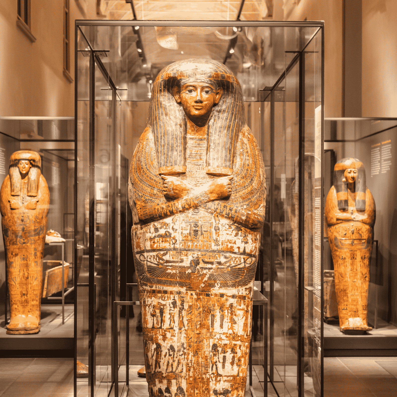 Neben Tutanchamun erwarten dich monumentale Statuen der Pharaonen, kunstvoll verzierte Sarkophage und seltene Papyrusrollen. Die Ausstellung ist so konzipiert, dass sie nicht nur die Schönheit der Artefakte zeigt, sondern auch deren historische Bedeutung erklärt. Interaktive Präsentationen und modernste Technik machen die Geschichte lebendig und ermöglichen ein Erlebnis auf Weltklasse-Niveau.